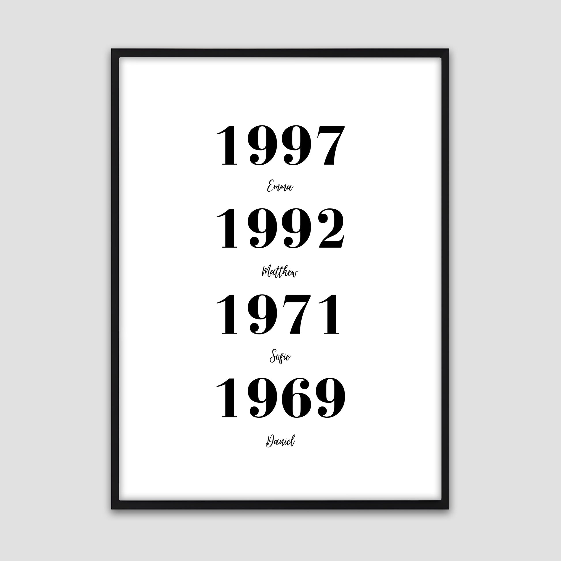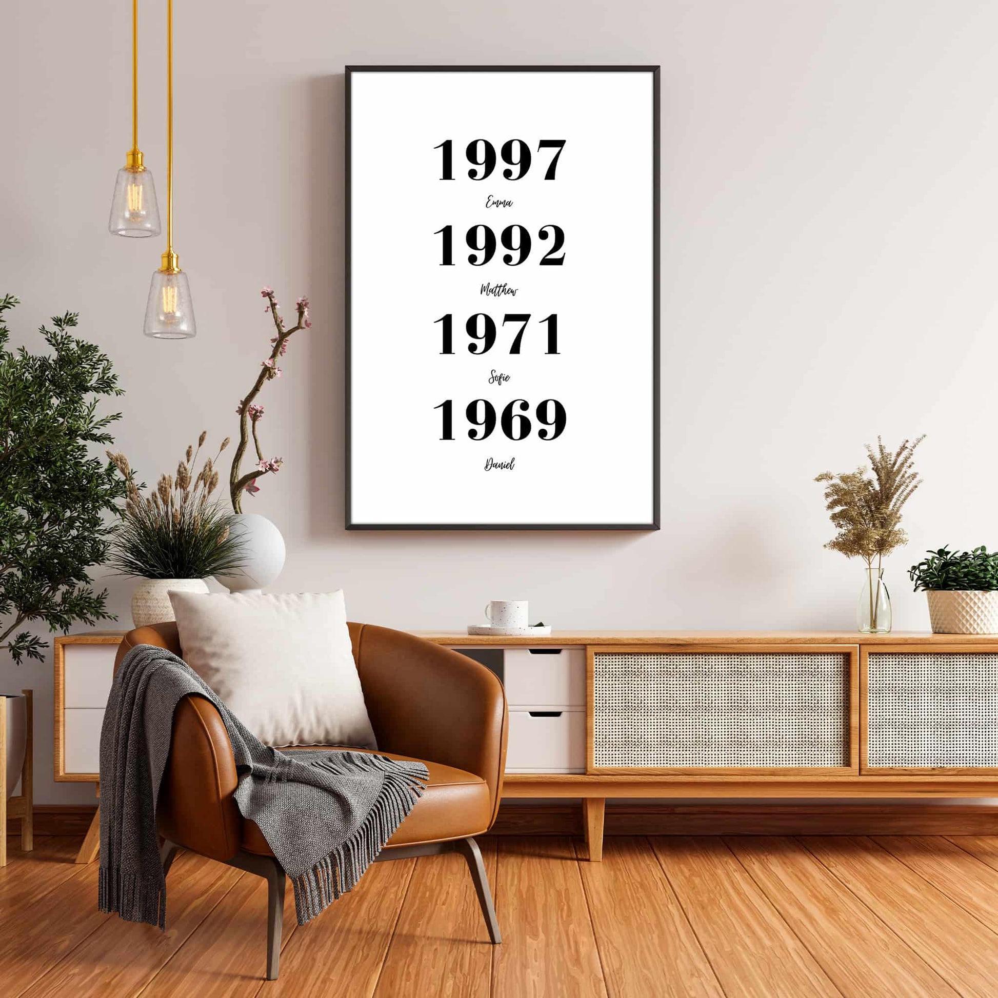 Celebrate the moments that matter most with a personalized name and date poster. Add your chosen names and years to create custom wall art for birthdays, anniversaries, or family memories.