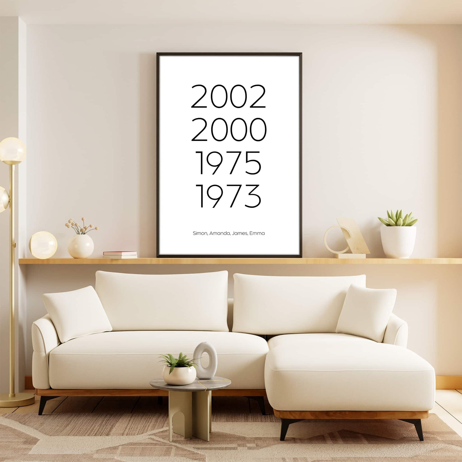 Turn your family’s most meaningful dates into art. Add names and years to create a personalized poster that celebrates birthdays, anniversaries, or milestones in timeless style.