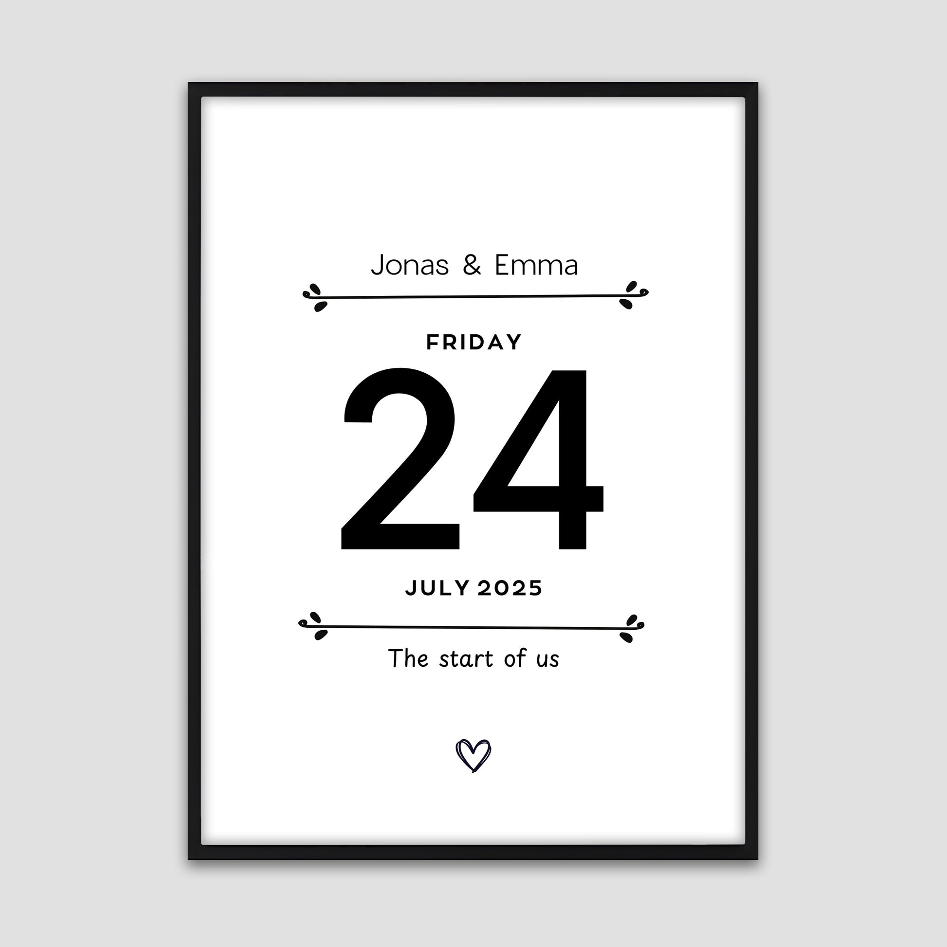 Some days change everything. Your wedding, the day you met, the moment your family began. This personalized date poster lets you capture that feeling and put it where you’ll see it every day. Add your names and your special date to make this wall art uniquely yours.
